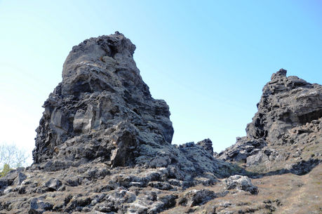 (20) Dimmuborgir, auch bekannt als die dunklen Städte oder dunklen Burgen, sind ein einzigartiges Lavafeld und die Überreste eines Lavasees östlich des Sees Mývatn. Diese bizarren Steinformationen erinnern an verfallene Ruinen von Burgen und Türmen. In der isländischen Mythologie gelten Dimmuborgir als Unterkunftsort von Elfen und Trollen.