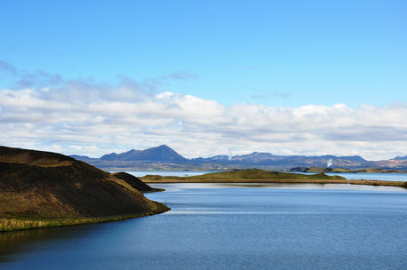 (15) Das Myvatn-Gebiet rund um den Mückensee im Nordosten ist auch heute noch vulkanisch aktiv, da die Grenze zwischen der Eurasischen und der Amerikanischen Kontinentalplatte hier verläuft. Seinen Namen erhielt der See wegen der Mückenschwärme, die während der Sommermonate oft in riesigen, nebelähnlichen Wolken über dem Wasser schweben. Der Mückensee ist nur 3-5 m tief.