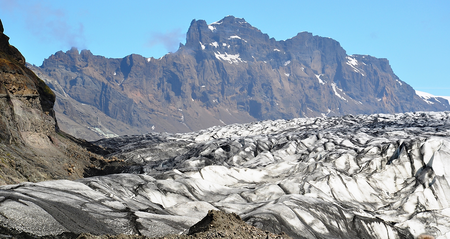 (8) Der Vatnajökull (isländisch für “Wassergletscher”) entstand vor etwa 2.500 Jahren und ist der größte Gletscher Islands. Er befindet sich im Südosten des Landes. Seine Fläche beträgt rund 8.100 km², was etwa 8 % der Fläche Islands entspricht. Er besitzt eine 1.000 Meter dicke Eisschicht. Unter dem Gletschereis befinden sich einige der aktivsten Vulkane auf Island. Seit einigen Jahren verliert der Vatnajökull wie die meisten Gletscher an Größe, hauptsächlich aufgrund der globalen Klimaveränderung und der vulkanischen Aktivitäten unter dem Gletscher.